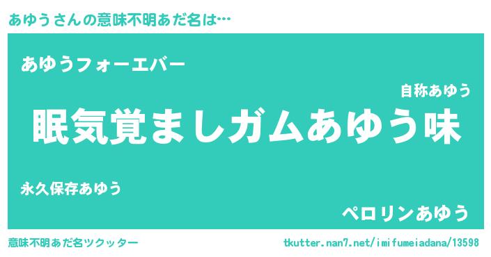 | ヒーロー風カッコイイあだ名 | 『慈愛の使者あゆう』『スーパーアユウ』 |