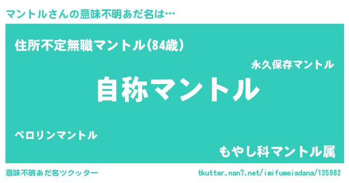 | ヘコむあだ名 | 『マントル(震え声)』『マンっふぃ~』 |