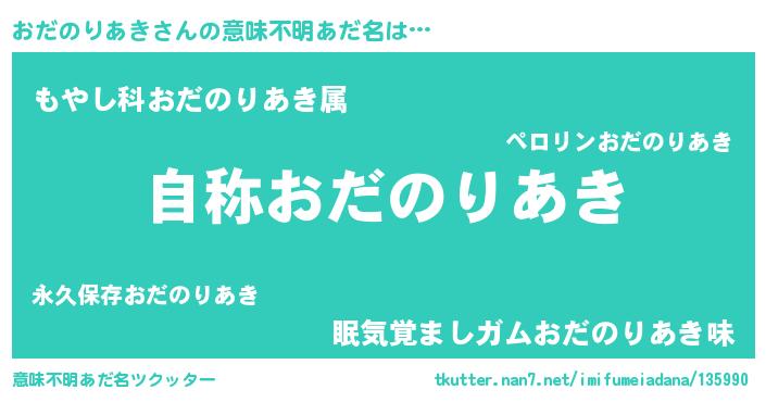 | 女子向けラノベタイトル風あだ名 | 『おだのりあきなんてお断りですっ。』 |
