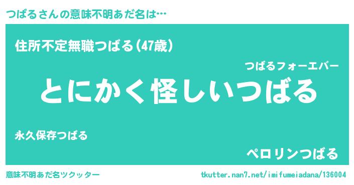 | 女子向けラノベタイトル風あだ名 | 『つばるの卵を拾いまして』 |