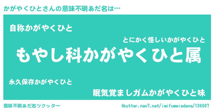 | ヘコむあだ名 | 『かがっぺ』『かがやくひと(震え声)』 |