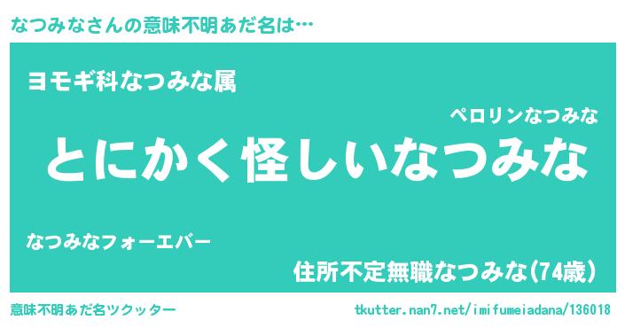 | 女子向けラノベタイトル風あだ名 | 『なつみなは平凡を望む』 |