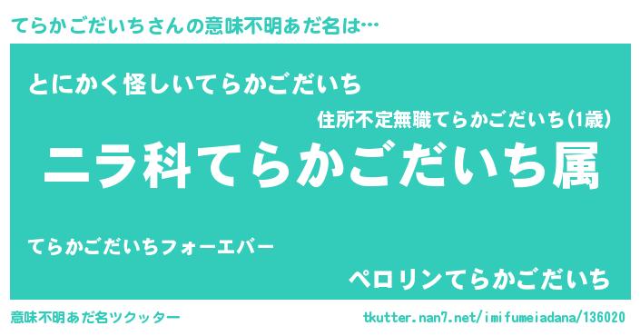 | 欧米人風あだ名 | 『トリンドルてらかごだいち』 |