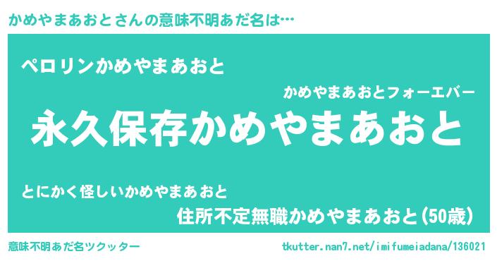 | 欧米人風あだ名 | 『かめやまあおと・ステッグマイヤー』 |