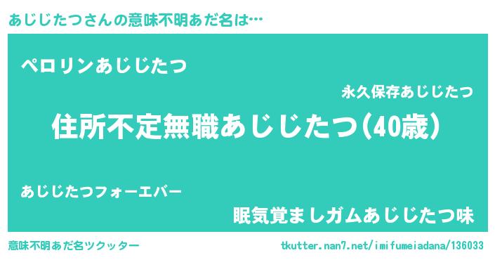 | ヘコむあだ名 | 『あじにゅー』『あじじたつ(遠い目)』 |