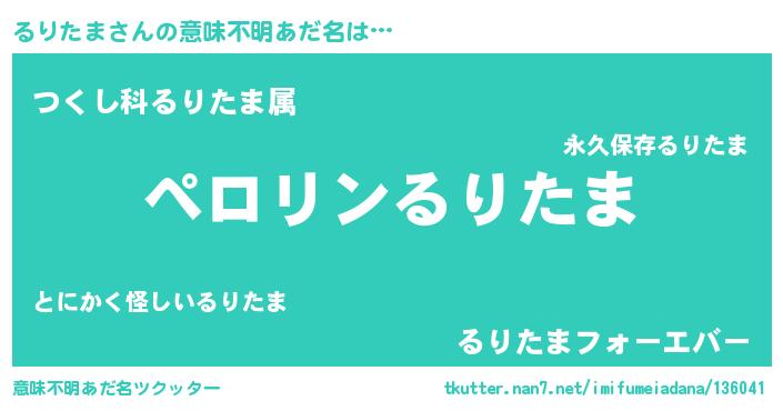 | 欧米人風あだ名 | 『るりたま・ステッグマイヤー』 |