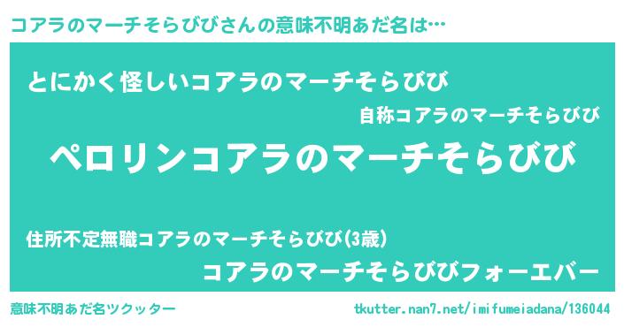 | ヒーロー風カッコイイあだ名 | 『スーパーコアラノマーチソラビビ』 |
