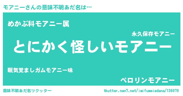 | ヘコむあだ名 | 『モアっぺ』『モアにゅー』『つくし』 |
