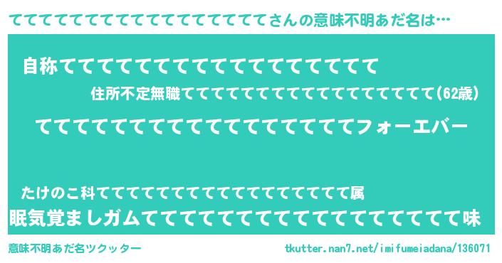 | ファンタジー風あだ名 | 『エターナルテテテテテテテテテテテテテテテテテー』 |