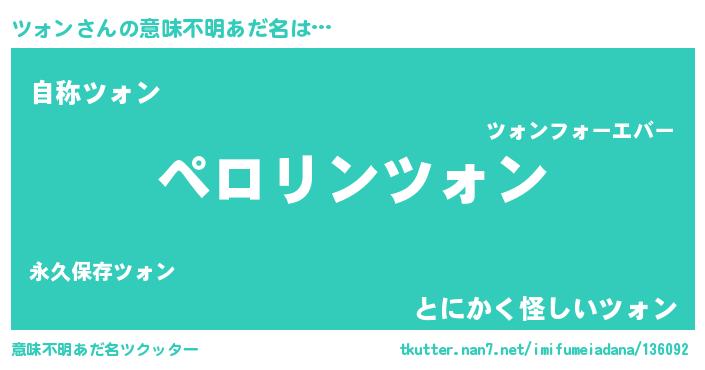| 男性向けラノベタイトル風あだ名 | 『ツォンの憂鬱』 |