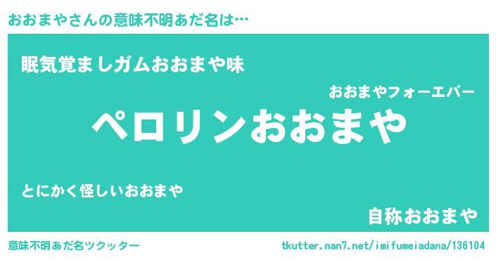 | ヒーロー風カッコイイあだ名 | 『スーパーオオマヤ』『愛の使者おおまや』 |