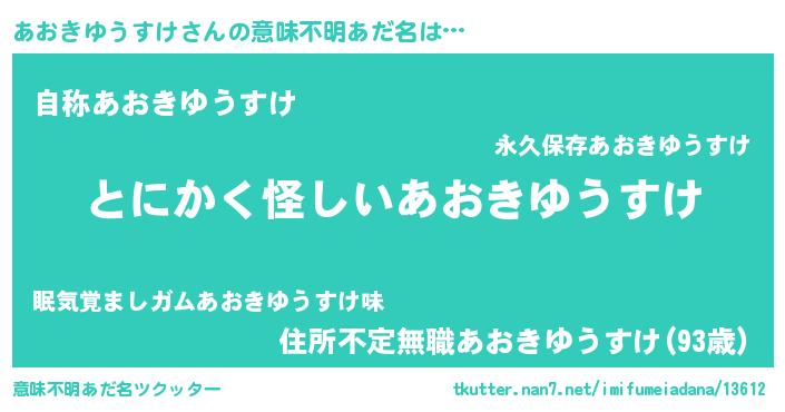 | ヘコむあだ名 | 『あおを』『あおきゆうすけ(遠い目)』 |
