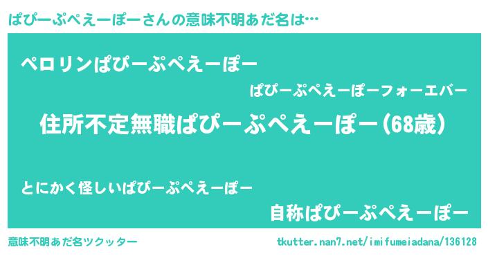 | 男性向けラノベタイトル風あだ名 | 『この素晴らしい世界にぱぴーぷぺえーぽーを!』 |