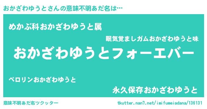 | 女子向けラノベタイトル風あだ名 | 『おかざわゆうとの雑貨屋さん』 |