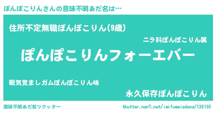 | 女子向けラノベタイトル風あだ名 | 『ぽんぽこりんの雑貨屋さん』 |