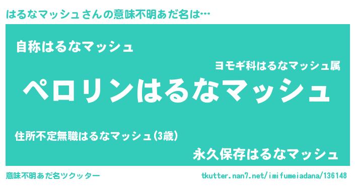 | ヒーロー風カッコイイあだ名 | 『スーパーハルナマッシュ』 |