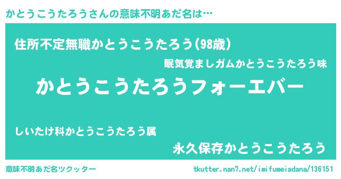 | 欧米人風あだ名 | 『かとうこうたろうクリステル』 |