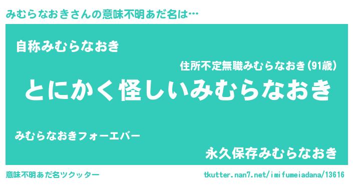 | ポケモン風あだ名 | 『ヒミムラナオキ』『ミムゴンZ』 |