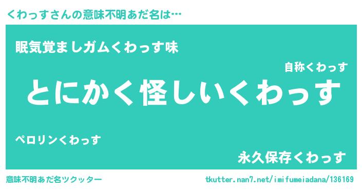 | ヒーロー風カッコイイあだ名 | 『幻影騎士クワ』『慈愛の使者くわっす』 |
