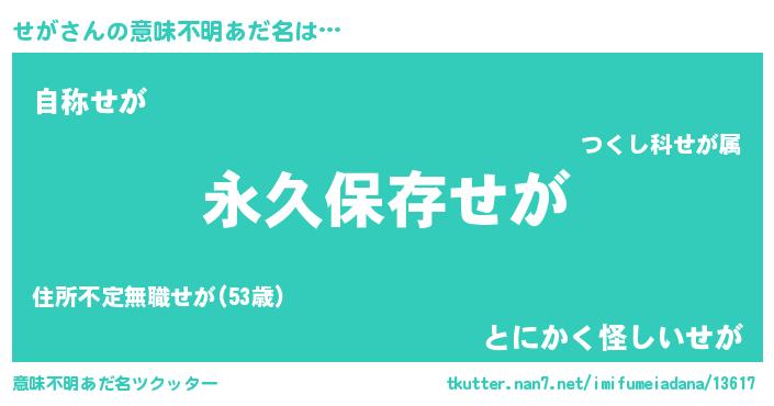 | ヘコむあだ名 | 『せが(笑)』『せがっ子』『つくし』 |