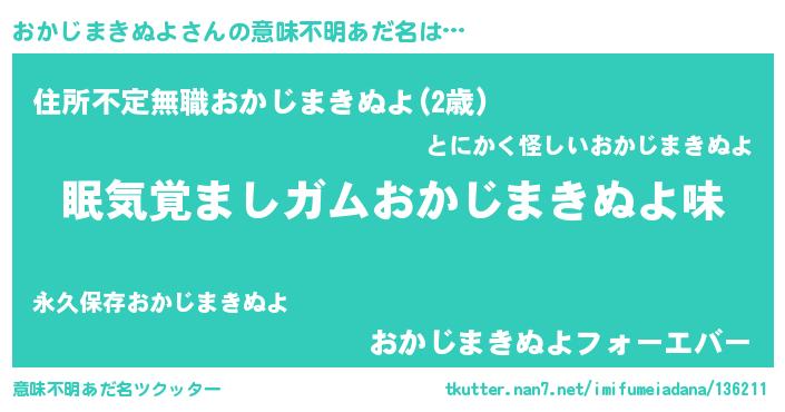 | 欧米人風あだ名 | 『ダニエルおかじまきぬよ』 |