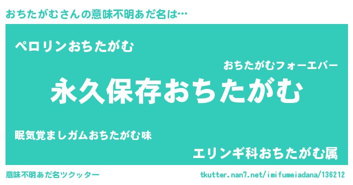 | 胡散臭い通販商品みたいなあだ名 | 『絶対に幸福をもたらす健康食品…その名も「おちたがむ」』 |