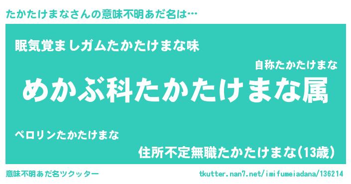 | 男性向けラノベタイトル風あだ名 | 『タカタケマナスレイヤー』 |