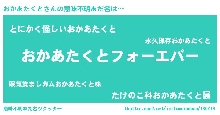 | ポケモン風あだ名 | 『オカアダネ』『ヒオカアタクト』 |
