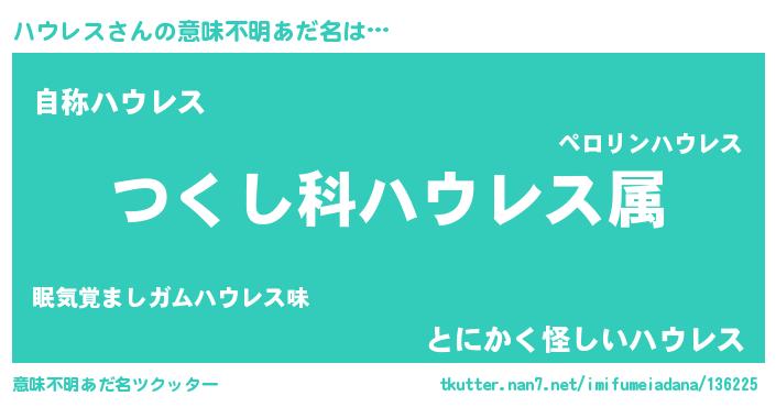 | ヘコむあだ名 | 『ハウを』『ハウにゅー』『豆乳』 |