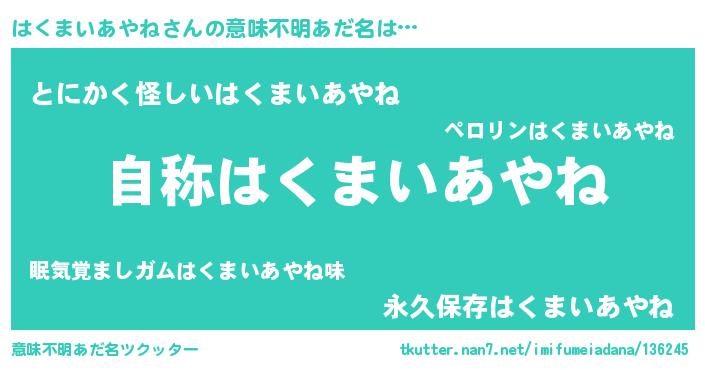 ヘコむあだ名 | 『はくっ子』『はくまいあやね(笑)』 |