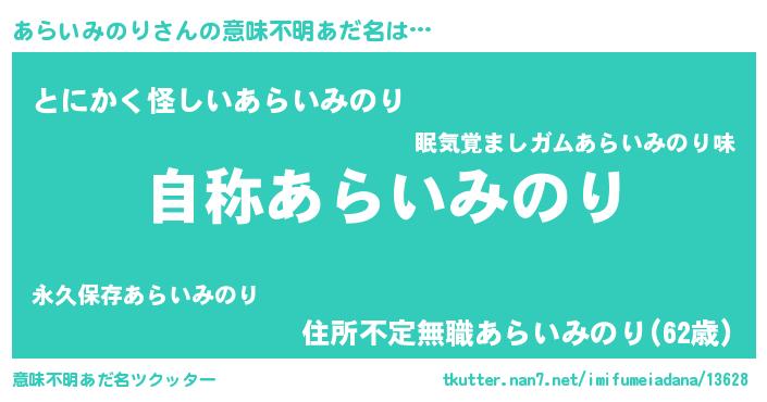 | 欧米人風あだ名 | 『ケンブリッジあらいみのり』 |