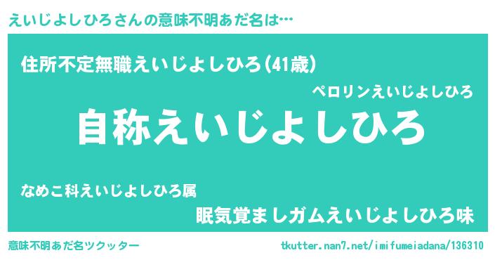 | 男性向けラノベタイトル風あだ名 | 『Re:えいじよしひろから始める異世界生活』 |