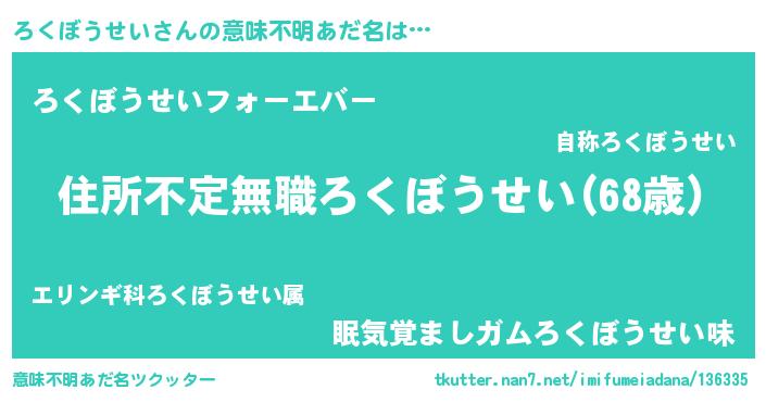 | 男性向けラノベタイトル風あだ名 | 『この素晴らしい世界にろくぼうせいを!』 |