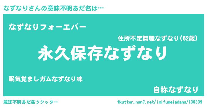 | ヒーロー風カッコイイあだ名 | 『ネオナズナリ』『ウルトラなずなりマン』 |