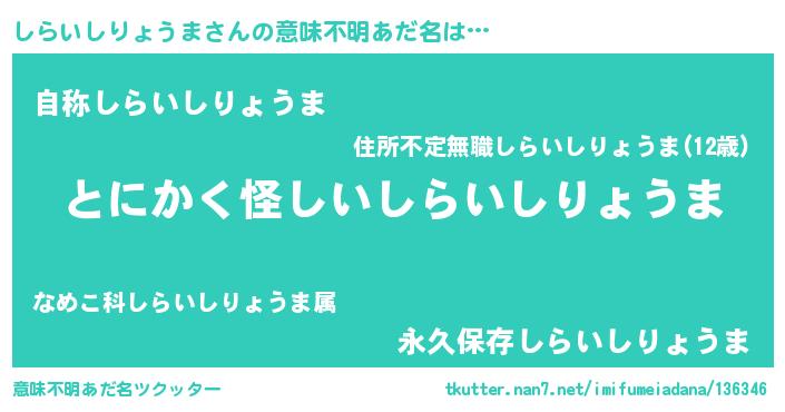 | ポケモン風あだ名 | 『ヒシライシリョウマ』『シラセウス』 |