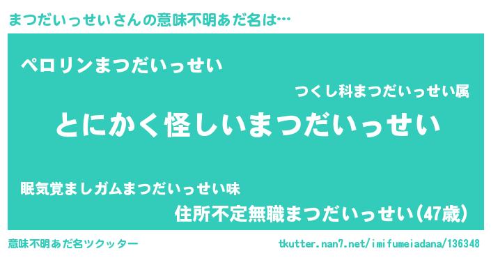 | 胡散臭い通販商品みたいなあだ名 | 『伝統あるサプリメント…その名も「まつだいっせい」』 |