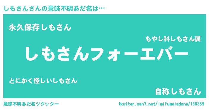 | 女子向けラノベタイトル風あだ名 | 『しもさんの雑貨屋さん』『闇のしもさん』 |