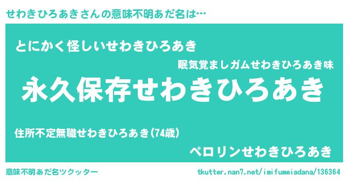 | ポケモン風あだ名 | 『ゼニセワ』『ヒセワキヒロアキ』 |