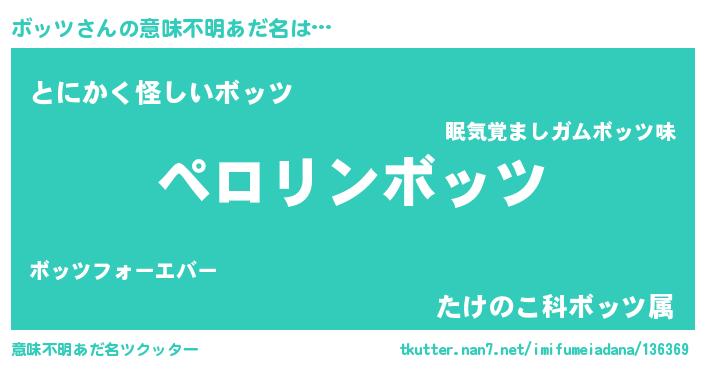 | ヘコむあだ名 | 『ボッもー』『ボッを』『豆乳』 |