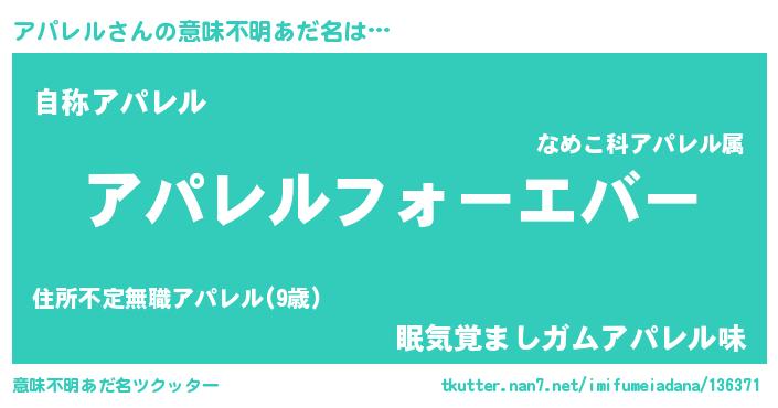| ポケモン風あだ名 | 『アパレダネ』『アパセウス』 |