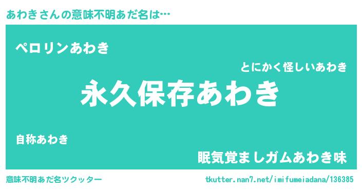 | ヒーロー風カッコイイあだ名 | 『ネオアワキ』『スーパーアワキ』 |