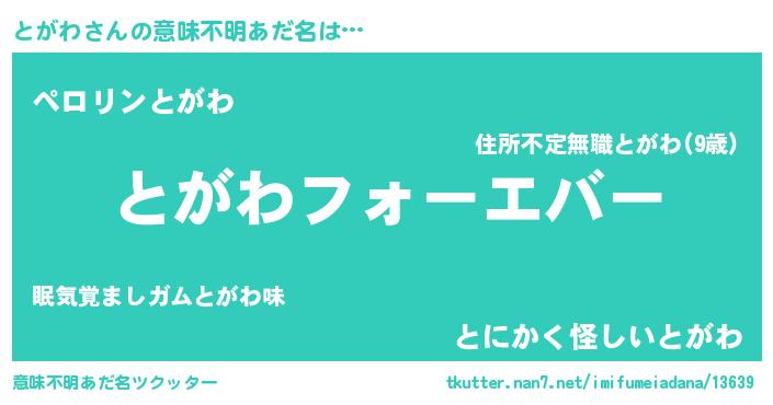 | ヒーロー風カッコイイあだ名 | 『ウルトラとがわマン』『スーパートガワ』 |