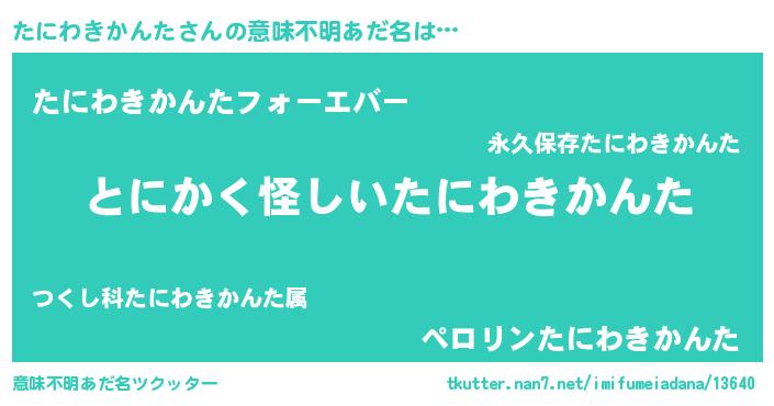 | ポケモン風あだ名 | 『タニゴンZ』『ヒタニワキカンタ』 |