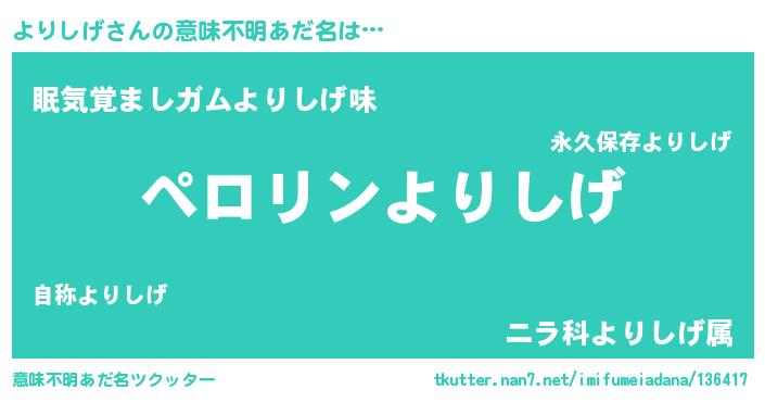 | ヘコむあだ名 | 『よりにー』『よりしげ(笑)』 |