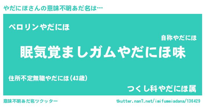 | 欧米人風あだ名 | 『ダニエルやだにほ』『マイケルやだにほ』 |