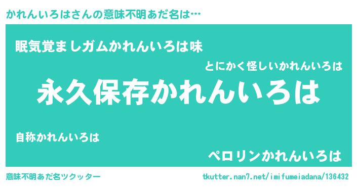 | 男性向けラノベタイトル風あだ名 | 『かれんいろはという概念が存在しない退屈な世界 』 |
