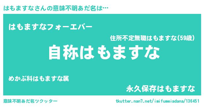 | ファンタジー風あだ名 | 『ゼハモトゥ』『エターナルハモマスナー』 |