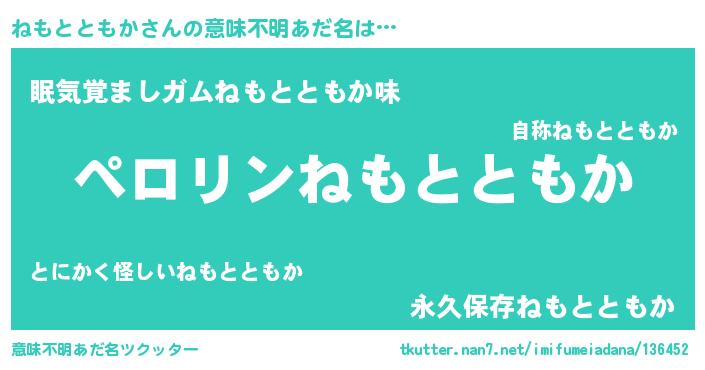 | ヘコむあだ名 | 『ねもっふぃ~』『ねもとともか(遠い目)』 |