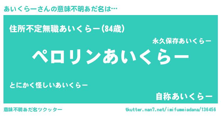 | 男性向けラノベタイトル風あだ名 | 『あいくらーの憂鬱』 |