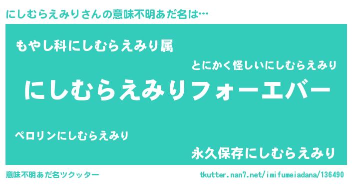 | 肩書あだ名 | 『にしむらえみり総理大臣』 |